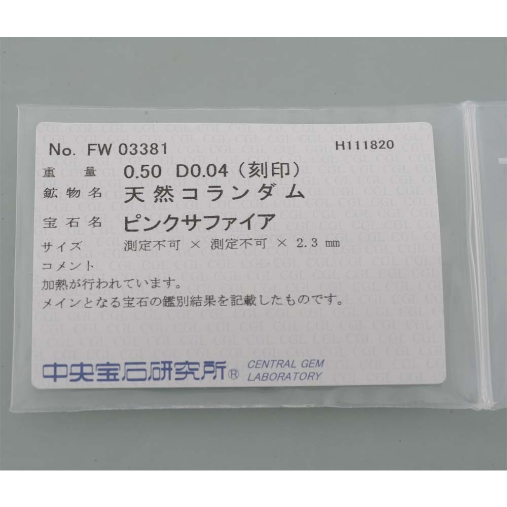 ● 付属品:ソーティングラベル(天然コランダム、ピンクサファイア、中央宝石研究所)にみ