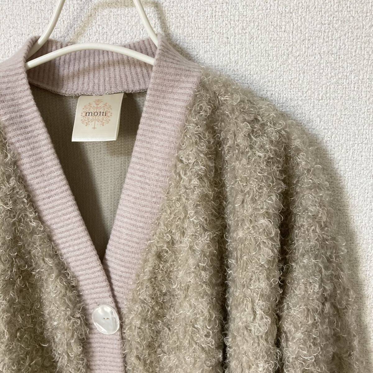 カルガンファーのようなフォルムの毛足がクルクルっとした可愛らしいカーディガン