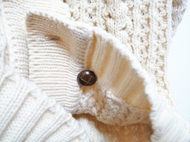 80’s ビンテージ アイルランド製 Glen Columb Kille アランニット カーディガン M位 クリーム色 100%ウール 予備ボタン付き