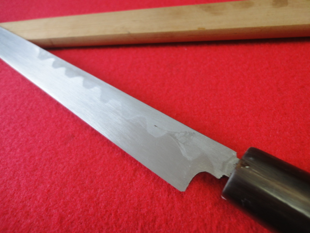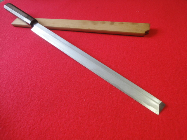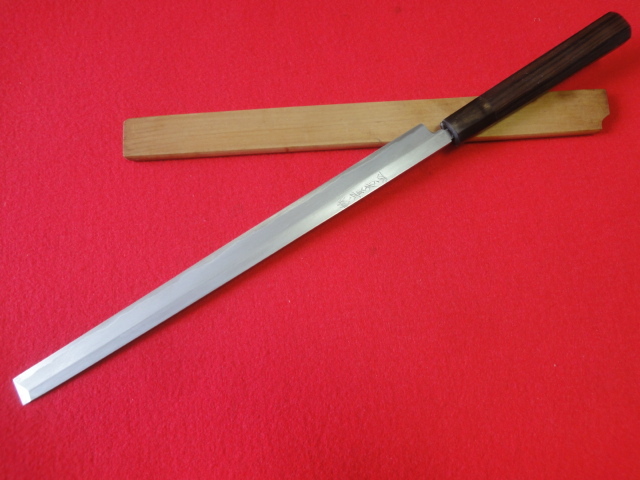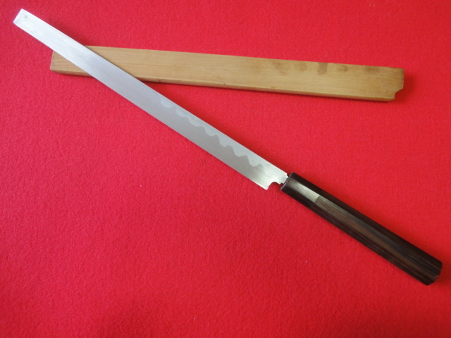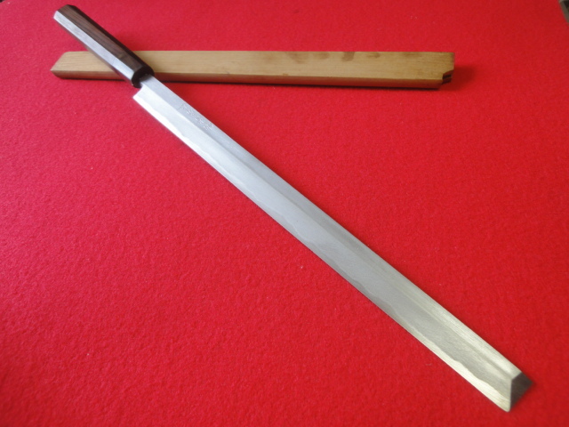 【貴房】蛸引包丁 ※青紙 高級黒檀八角柄 刃渡29.7㎝ 全長45.3㎝ 峰厚3㎜ ※鞘付 ※片刃 中古品 全国一律送料1100円