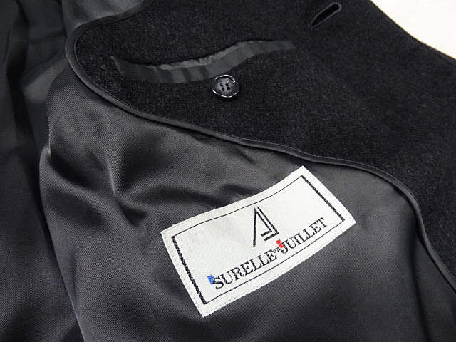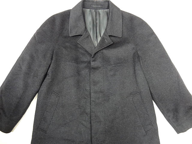 ビンテージ SURELLE JUILLET 80S 90S カシミア 100% ステンカラーコート 黒 チャコールグレー 色 サイズL トレンチ ビジネス スーツ レア
