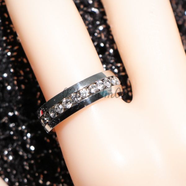 【送料無料・即決】S1 リング 14号 ステンレス CZ フルエタニティ シングルライン シルバー きらきら シンプル ユニセックス 指輪