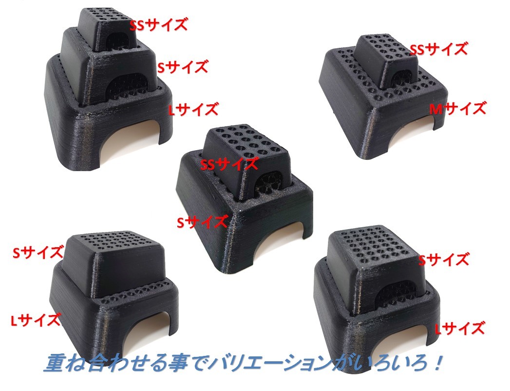 | 商品説明 | 運動シェルター 商品説明 商品をご覧頂き有難う御座います。 皆様から度々ご意見を頂いておりましたご購入しやすい「お試しセット」をご用意致しました。 今現在、数量限定ですが他の商品同様宜しくお願い致します。 本来、爬虫類や小動物は自然の中で生活しているので、飼育ケース等で飼育するとどうしても運動不足になってしまいます。 ペットの健康管理をする上で運動は重要不可欠です。 そこで、限られたスペースの中で効率良く上下運動できる様に考えられたのが「運動シェルター」です。 種類を組み合わせる事で動物や飼育ケースの大きさに合わせて自由に組み合わせる事が出来ます。 ※動物によってはジャンプしたり尻尾等で脱走する生体もおりますので飼育ケースに 蓋をするなど脱走防止策を必ず行ってください。 運動シェルター(SS) ・寸法(約) 58mm×40mm×高さ23mm ・材質 PLA 運動シェルター(S) ・寸法(約) 95mm×76mm×高さ37mm ・材質 PLA 運動シェルター(M) ・寸法(約) 113mm×94mm×高さ42mm ・材質 PLA 運動シェルター(L) ・寸法(約) 140mm×121mm×高さ52mm ・材質 PLA ※※※ 注意 ※※※ ・商品は50℃以上になると商品が変形する恐れがありますのでご注意下さい。 ・商品は一つ一つ手作りで作製しておりますので多少の寸法誤差や色合いが 違う場合がございますのでご了承ください。 ・商品の寸法、形状、材質等を予告なく変更する場合がありますので予めご了承下さい。 |