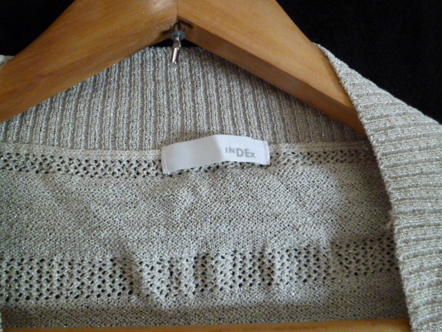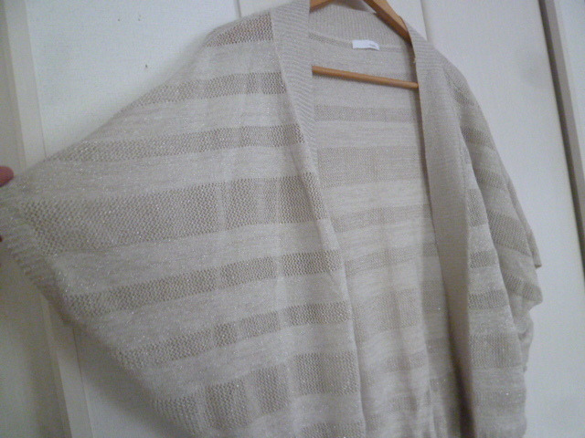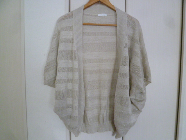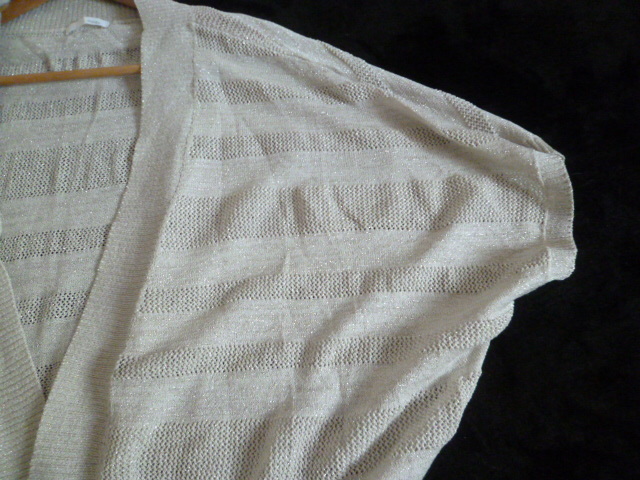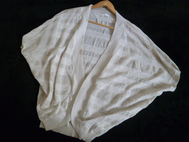 INDEX/インデックス○シルバーラメかぎ編みボーダーストール風ボレロカーディガンM/ワールド○①K1028