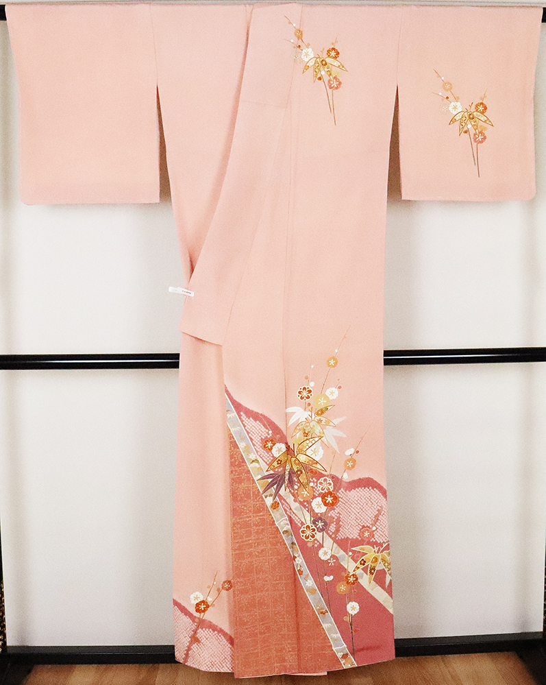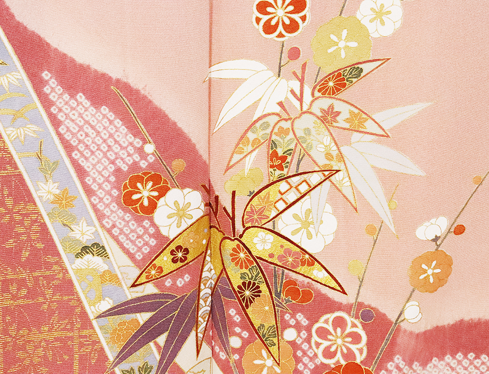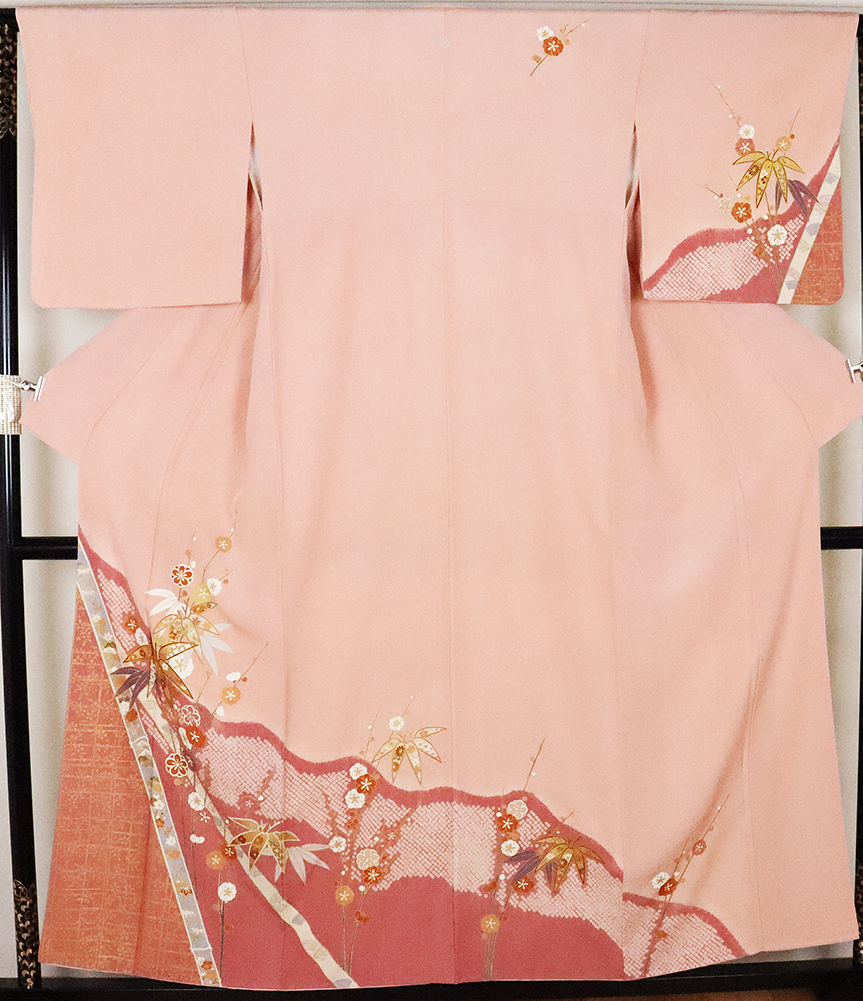 | 色・柄 | 訪問着 袷 丹後縮緬地 薄赤紫・赤紫ぼかし地 松竹梅・桜・菊・牡丹・絞り流水・絞り鹿の子 (写真では上手く色が出ない場合があります。ご了承下さい) |