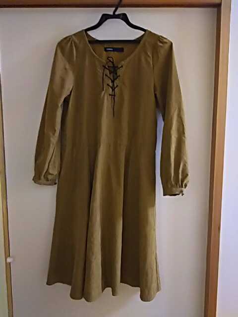 as know asの濃いベージュのワンピースです。フリーサイズですが、普段mを着ている私でちょうど良いです。ピッタリではなく、フワッとしたデザインです。