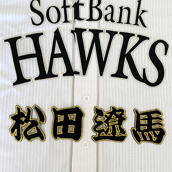 | 商品説明 | 福岡 ソフトバンク ホークス 松田遼馬選手の名前、アイロン接着用刺繍ワッペンの出品です。 アイロンにて簡単に接着可能♪♪ ※写真のユニフォーム等、他の装飾品はついておりません。 名前ワッペンのみです。 |
