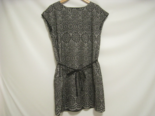 Comme ca Mature コムサマチュア ワンピース 丸首 黒×白×灰色 ブラック×ホワイト×グレー ラメ フリーサイズ 毛混 リボン