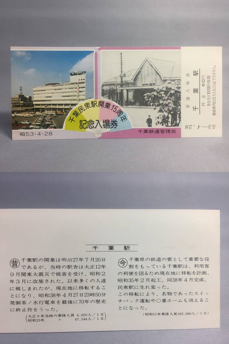 国鉄・千葉鉄道管理局 昭和53年4月28日 千葉民衆駅開業15周年記念入場券 5枚 【K13-5400-1】