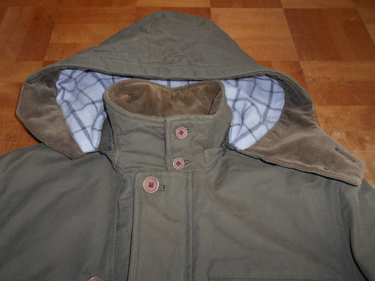 襟内側とフード内側周りに綿100%細コーデュロイを貼ってます。