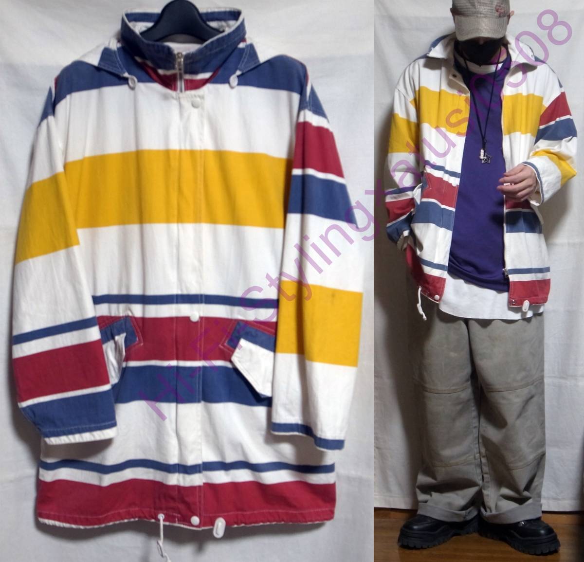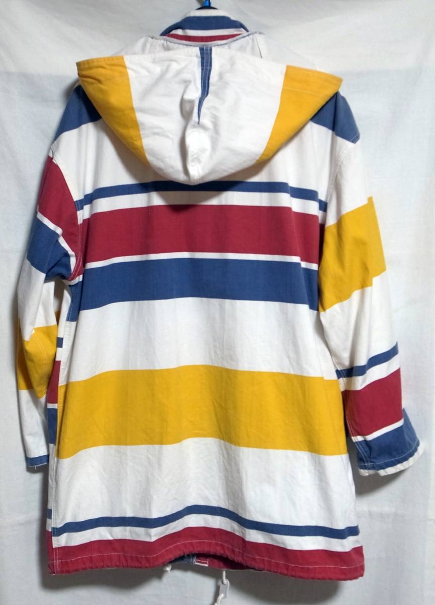 ご回覧ありがとうございます。お手数ではございますがトラブルの元になりますので、説明文は最後までお読み下さい。 着画がある場合のモデルは177×62位の男性です。 こちらはBRANDON THOMASのヴィンテージのマルチボーダー柄のコットンフーデッドジャケットになります。サイズ表記はSです。 フードは取り外し可能です。サイズ感も良くヴィンテージの風合いがたまらなく格好良いです。 女性がオーバーサイズで着られても絶対に可愛いと思いますのでパートナーとの兼用やプレゼントとしても喜ばれるかと思います。 状態はvintage clothingで白い部分に僅かに汚れはございますが目立つダメージや汚れは感じられません。普段からコーディネートに古着も合わすお洒落さんなら問題無いかと思います。神経質な方はご遠慮下さいませ。 サイズ表記 S 実寸平置き(背中心着丈 81cm位、脇下身幅 60cm位、肩幅 57cm位、袖丈 53㎝位) ※着画モデルは177×62位の男性です。 特殊なアイテムの素人採寸ですので多少の誤差はご了承の上ご参加下さい。 |