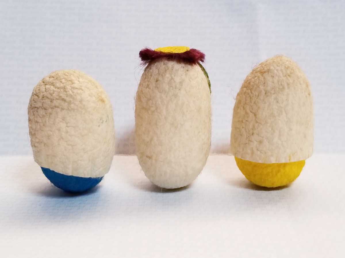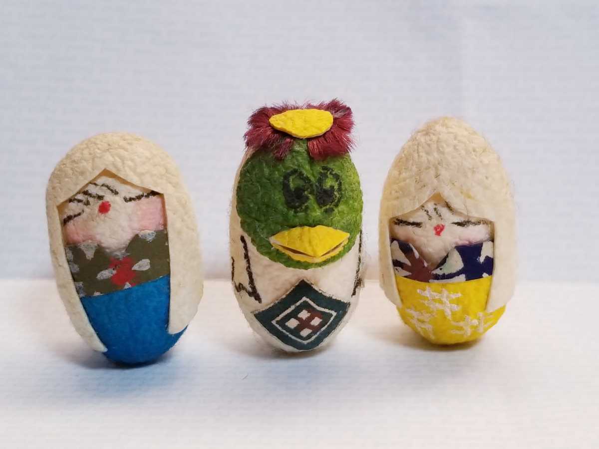 昭和レトロ 繭人形 繭カッパ です。50年位前のお品です。若干経年のくすみがございますが、状態は概ね良好です。高さおよそ4㎝