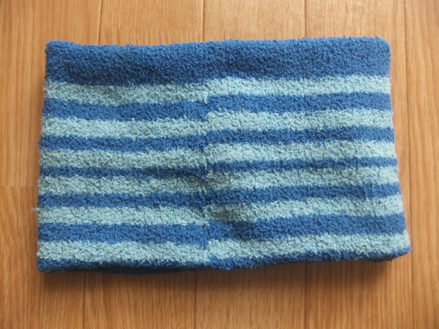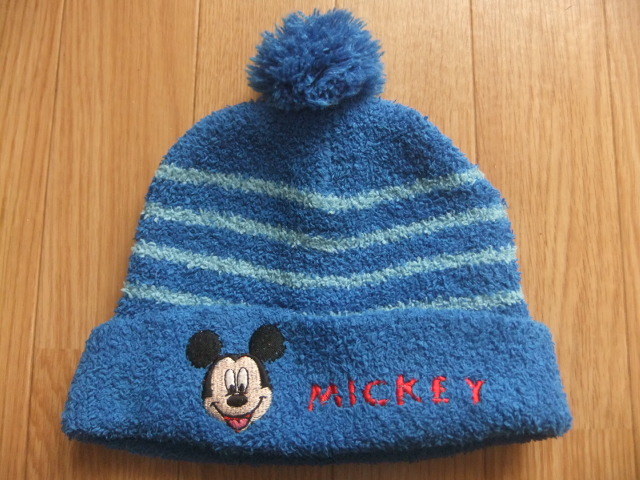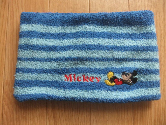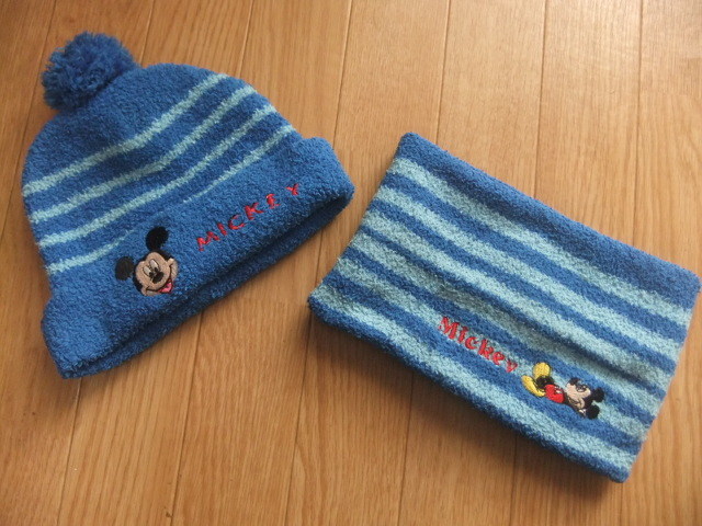 ミッキーマウスの刺繍をあしらった青×水色のマシュマロタッチキャップ&ネックウォーマーのセットです。