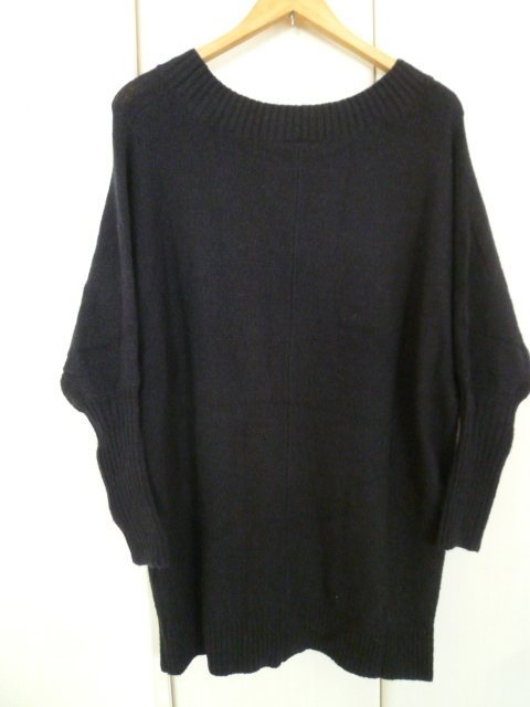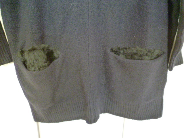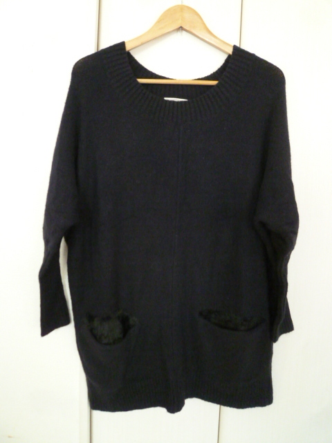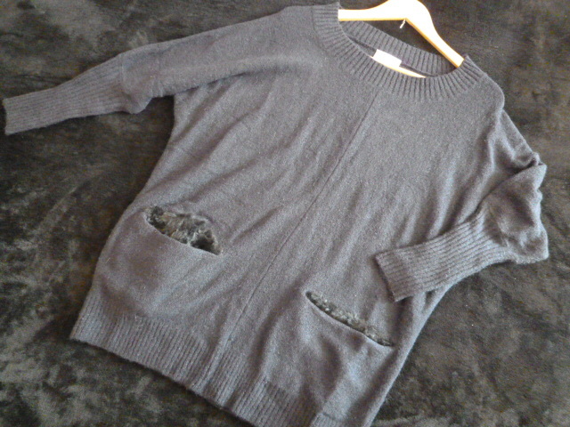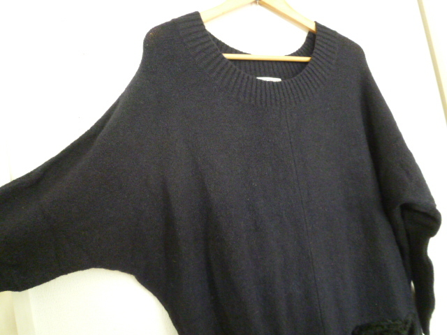 Rouge vif/ルージュヴィフ○黒紺系ドルマンロング丈ニットセーター/ファーポケットアバハウスブラックネイビー○ST1015