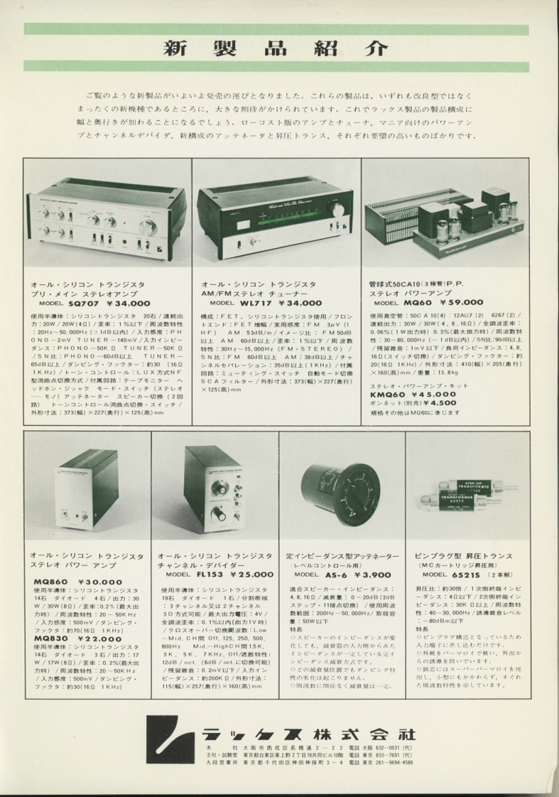 LUXMAN 70年代頃の新製品カタログ ラックスマン 管3697