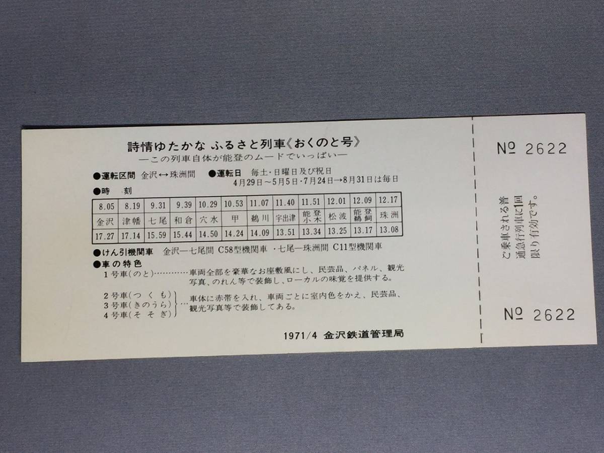 ふるさと列車<おくとの号> 金沢ー珠洲間運転記念急行券 【K4-29】