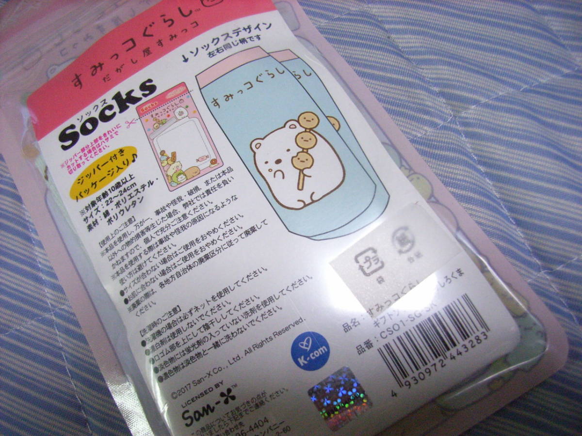 ジッパー付パッケージ入りソックス すみっコぐらし