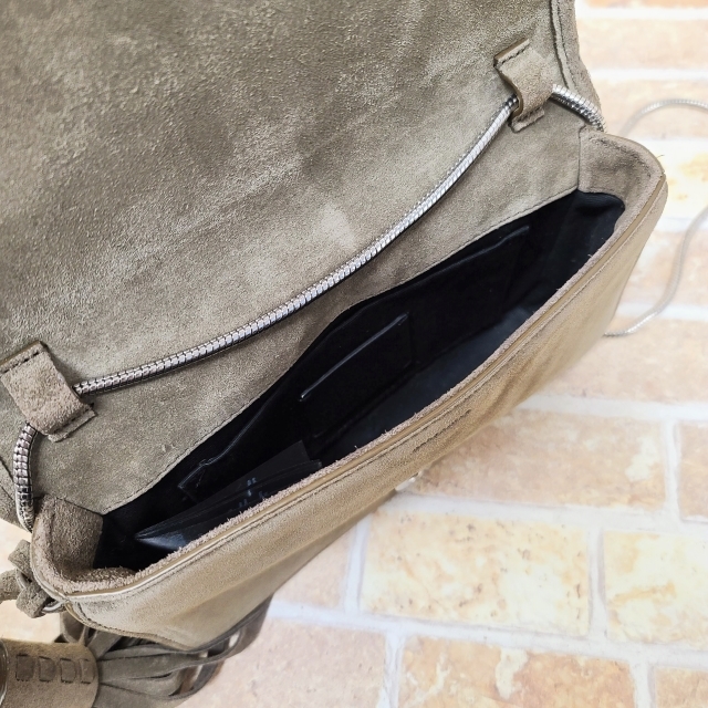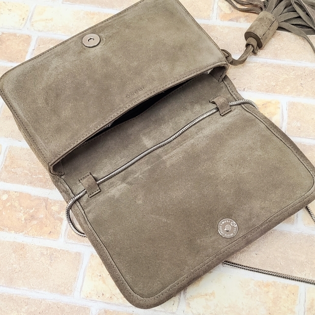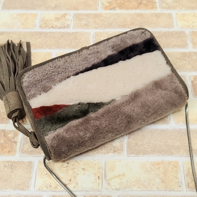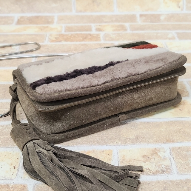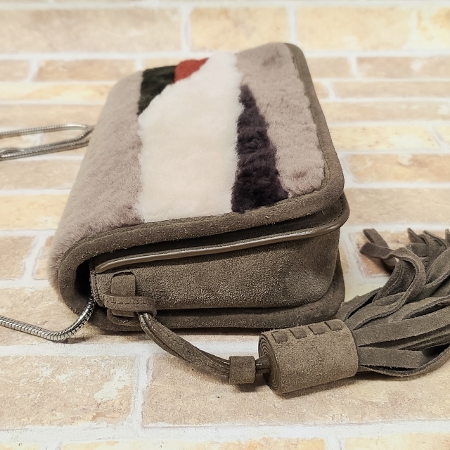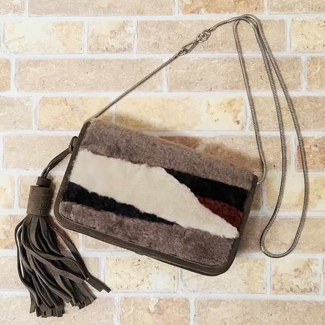 オールセインツ ALLSAINTS ムートン スエードレザー ミニ ショルダーバッグ オリーブ系 クラッチ タッセル | |