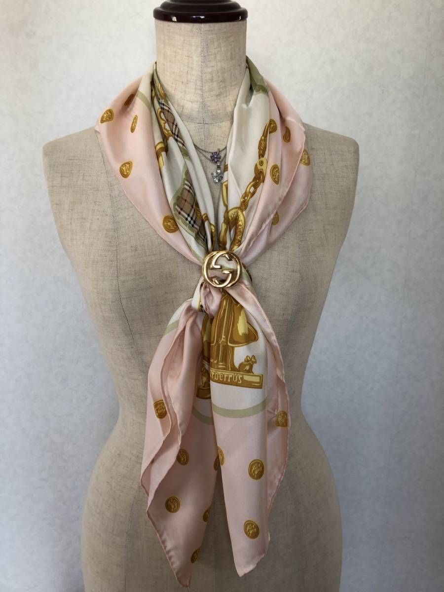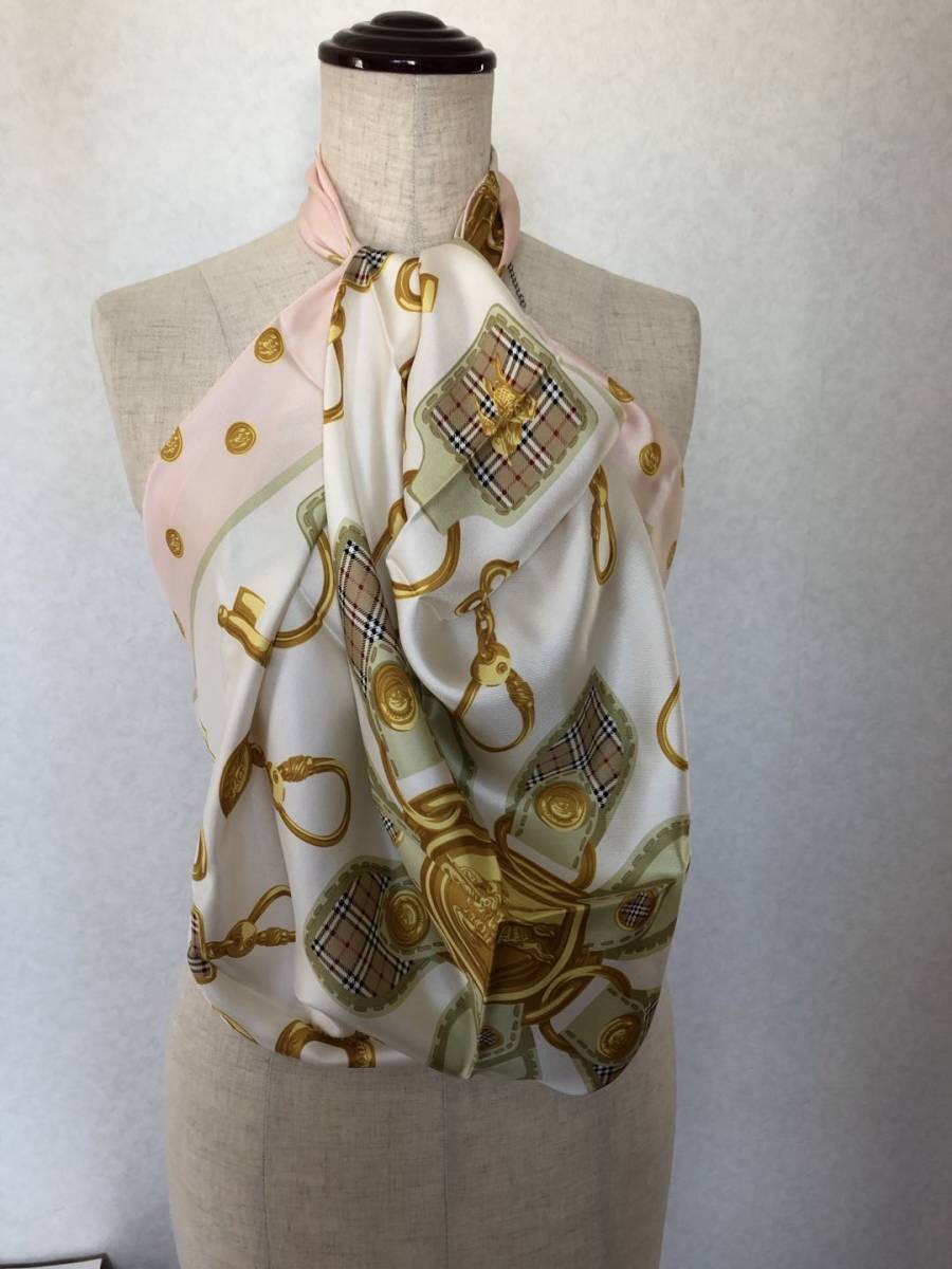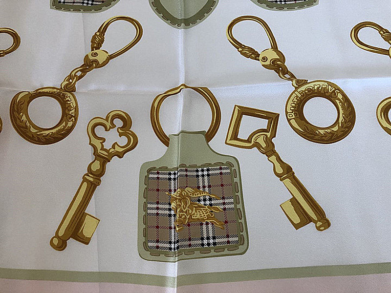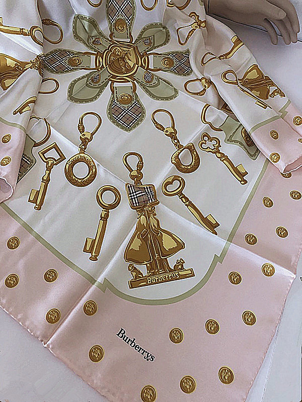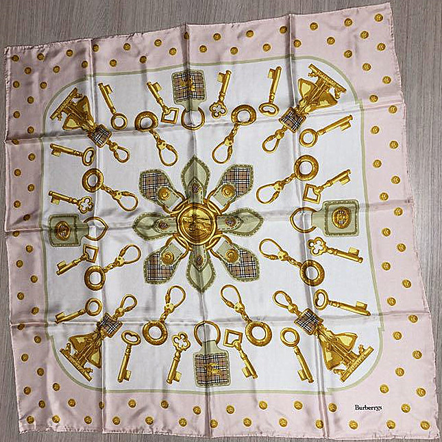 Burberry バーバリー◆レア柄ビンテージシルク大判スカーフ★87×87㎝