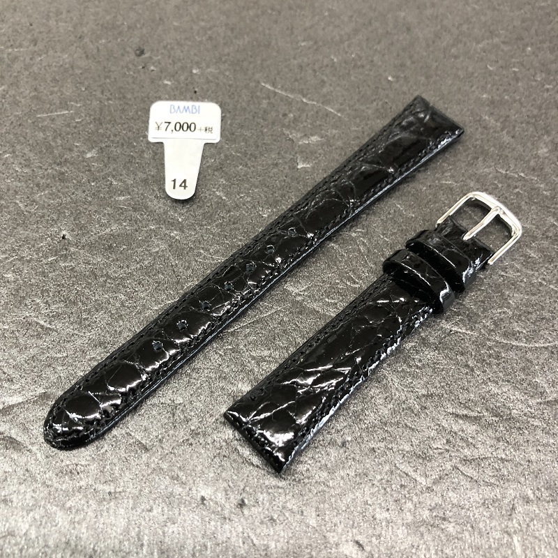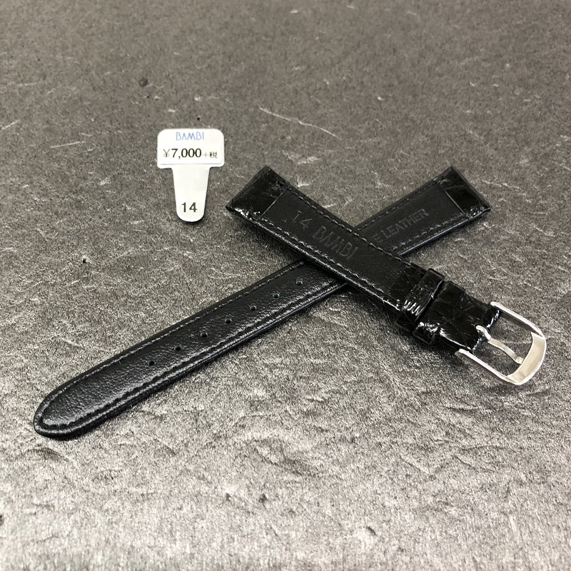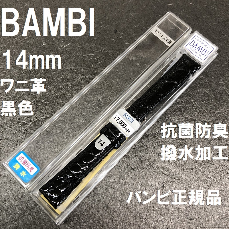 バネ棒付★送料無料★特価 新品★BAMBI ワニ革 バンド 14mm 時計ベルト 黒 ブラック 黒色 抗菌防臭 撥水★バンビ正規品 定価税込7,700円