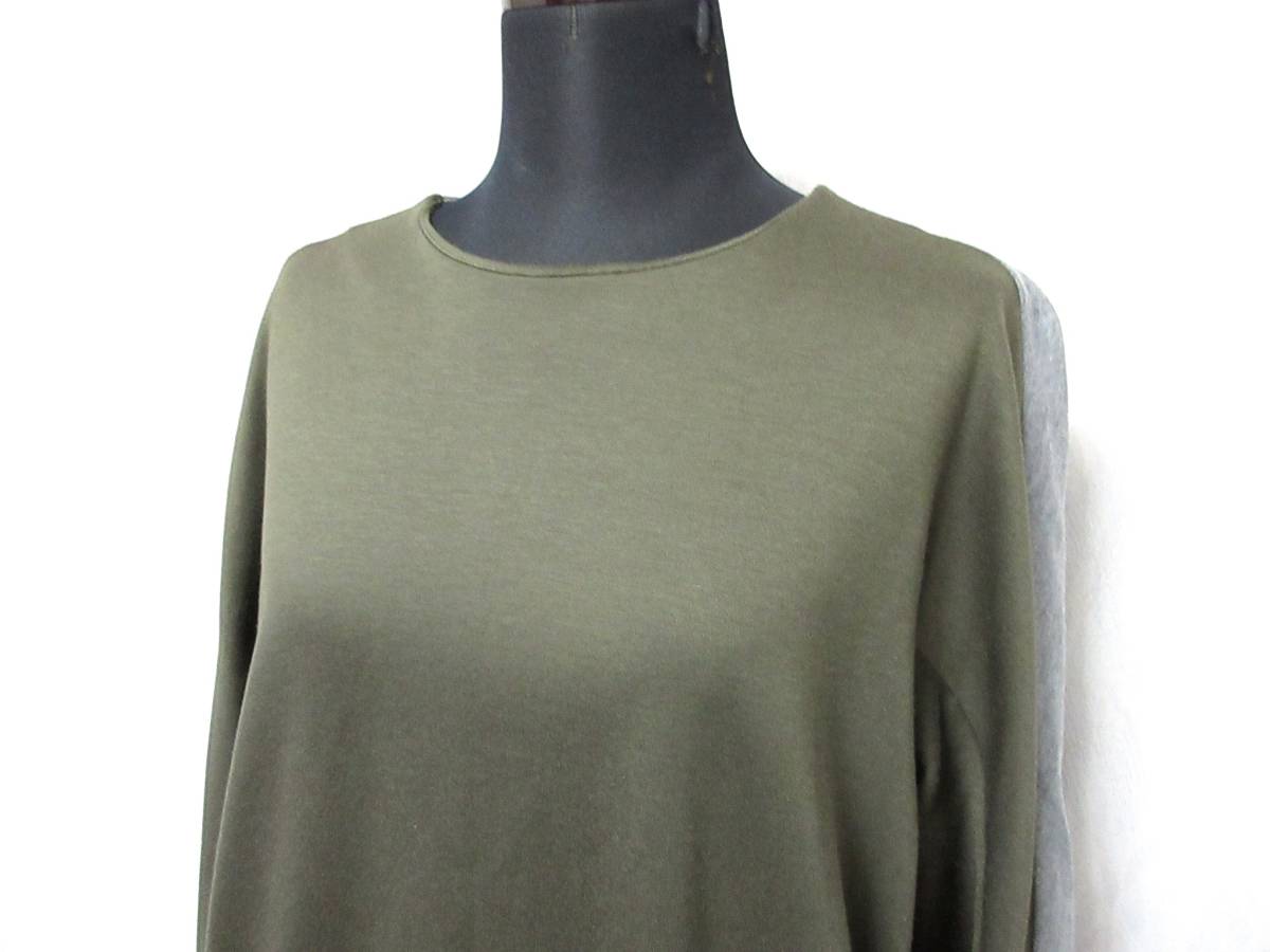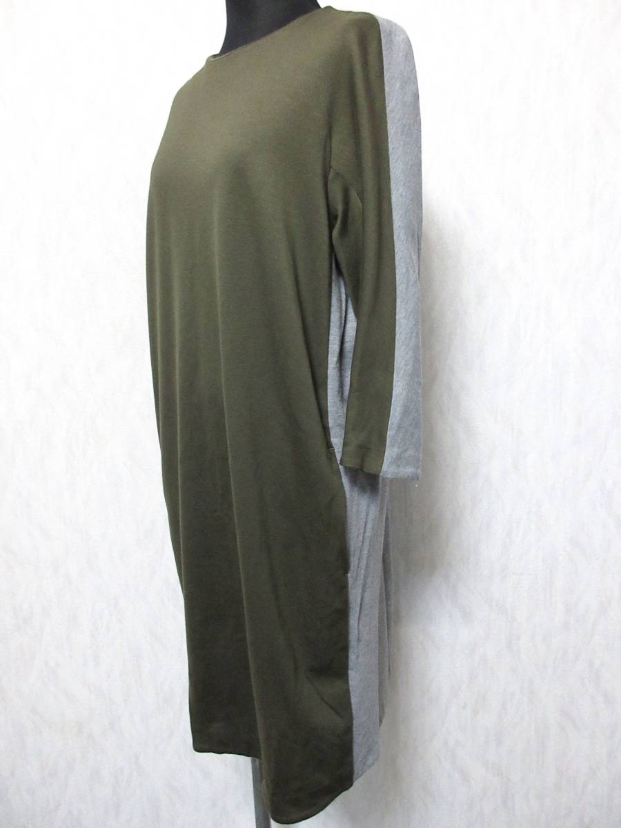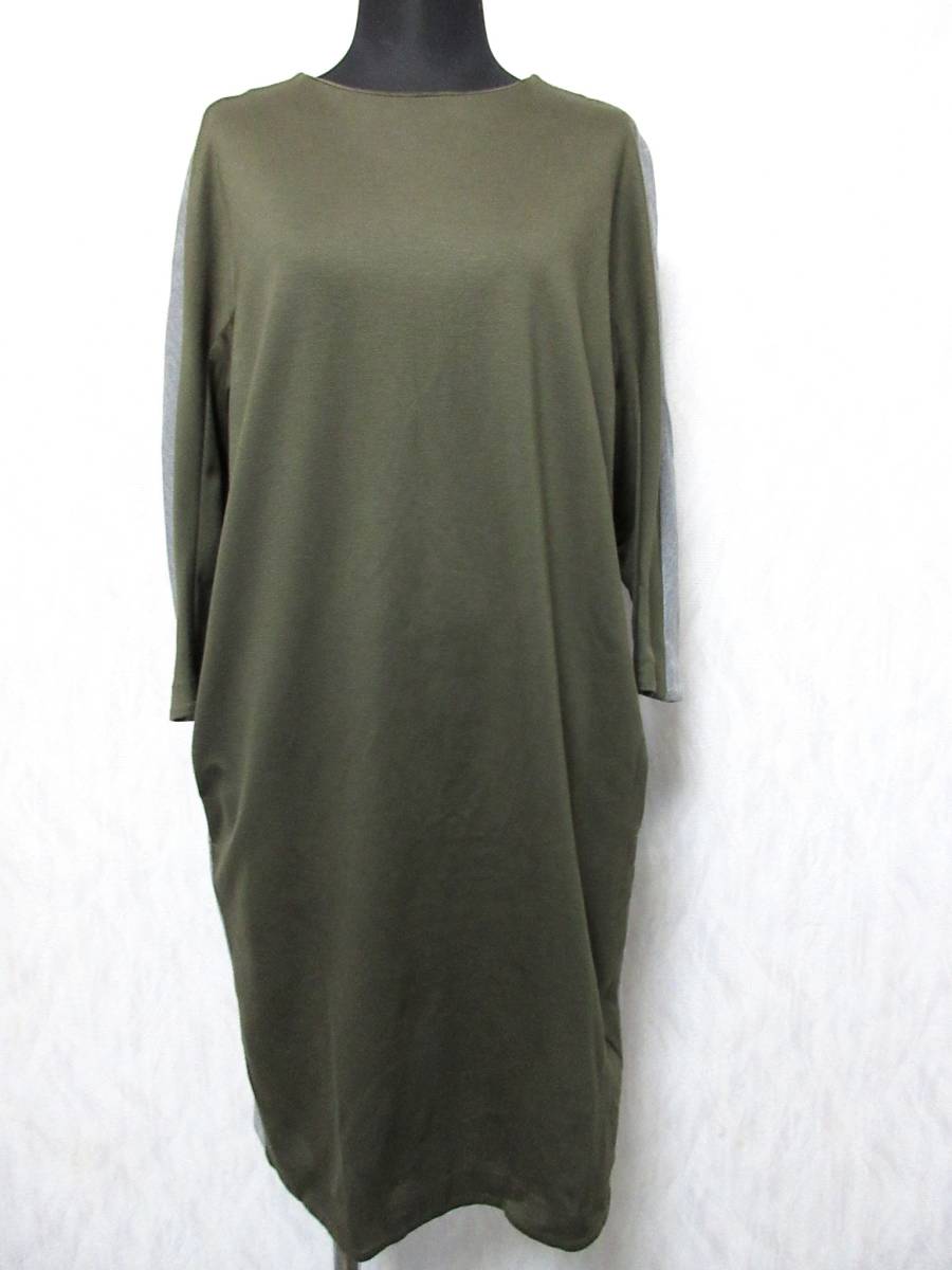 デザインワークス バイカラー ワンピース カーキ × グレー 38 北942