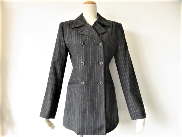 ■上質美品【PEYTON PLACE】ペイトンプレイス高級ウールジャケット9号M グレーストライプジャケット j11