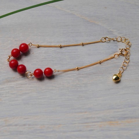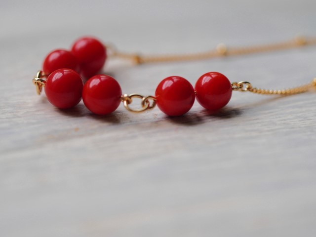 真っ赤な珊瑚に細いチェーン、大人の女性に似合うブレスレット