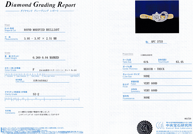 | ★付属品 | ・鑑定書(中央宝石研究所発行) ・リングケース(一般の無地のケース、または3枚目の写真に掲載のギフト用ケースよりお選びいただけます。) | |