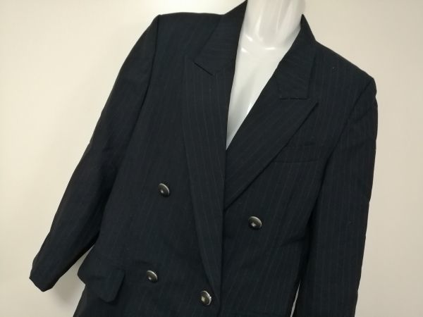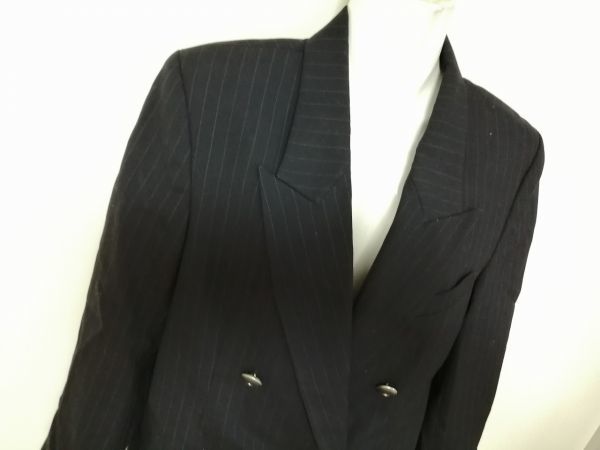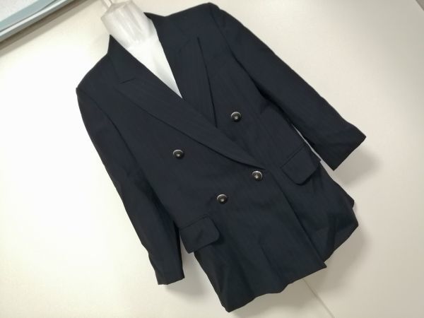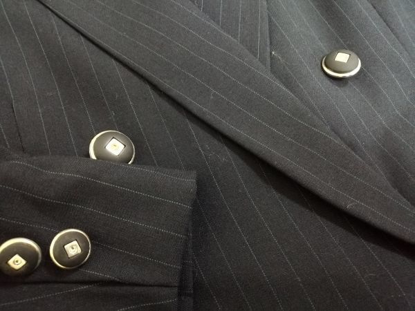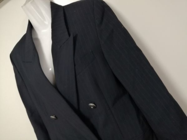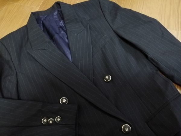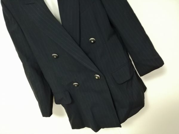 kkyj4364 ■ ダブルジャケット ■ ブレザー ストライプ 紺 ネイビー M~Lサイズくらい