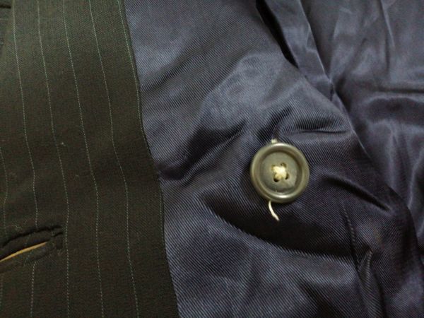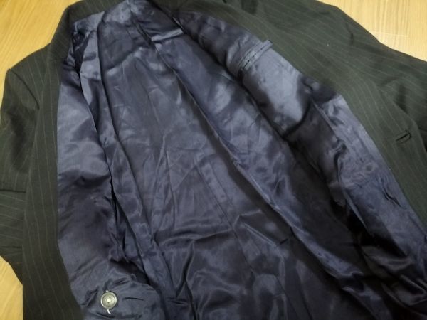 細いストライプの柄のダブルジャケットです。タグが無く詳細不明です。