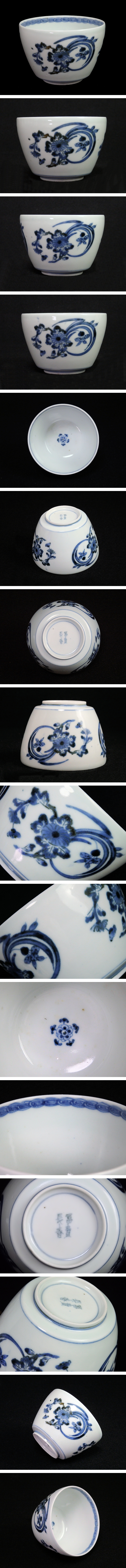 ★華心★ BKc-C552mS 古伊万里 藍九谷 菊に蘭の図 大振蕎麦猪口 江戸中期