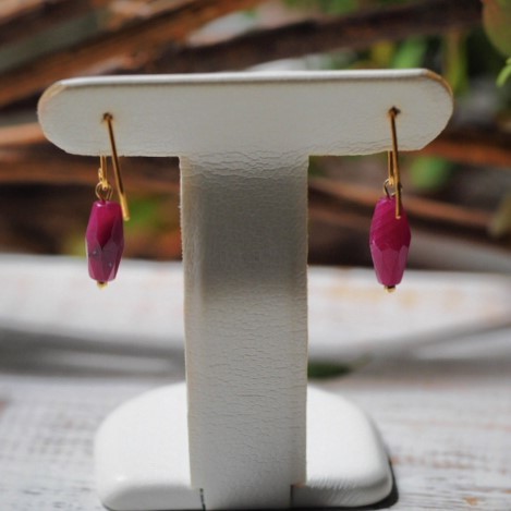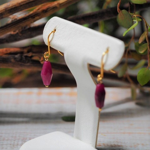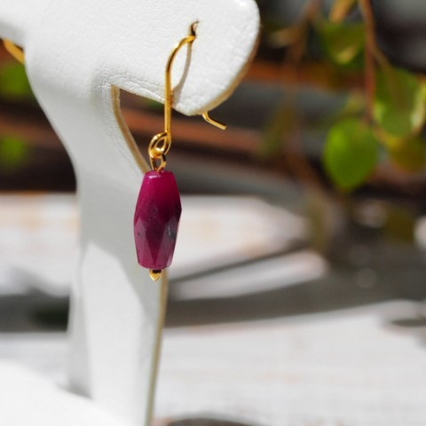 流通の少な赤色のサファイアをシンプルなピアスにしました。
