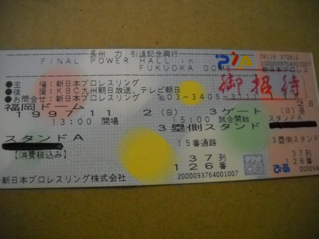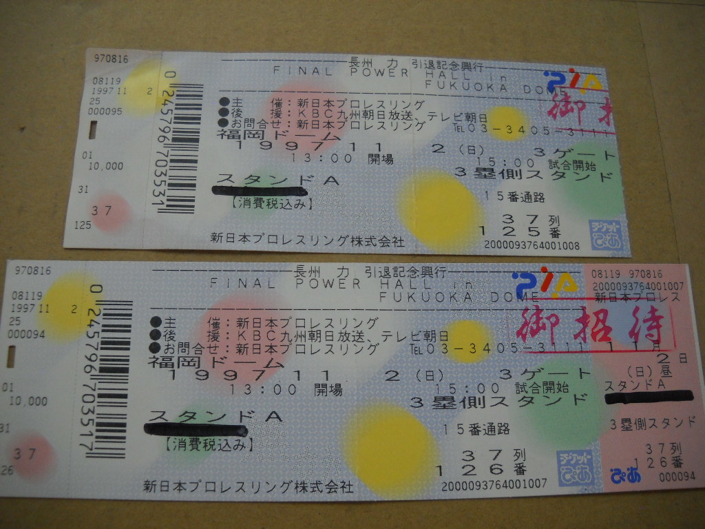 ★新日本プロレスリング 長州 力 引退記念興行 使用済&未使用チケット 2枚セット 1997/11/2 コレクション★