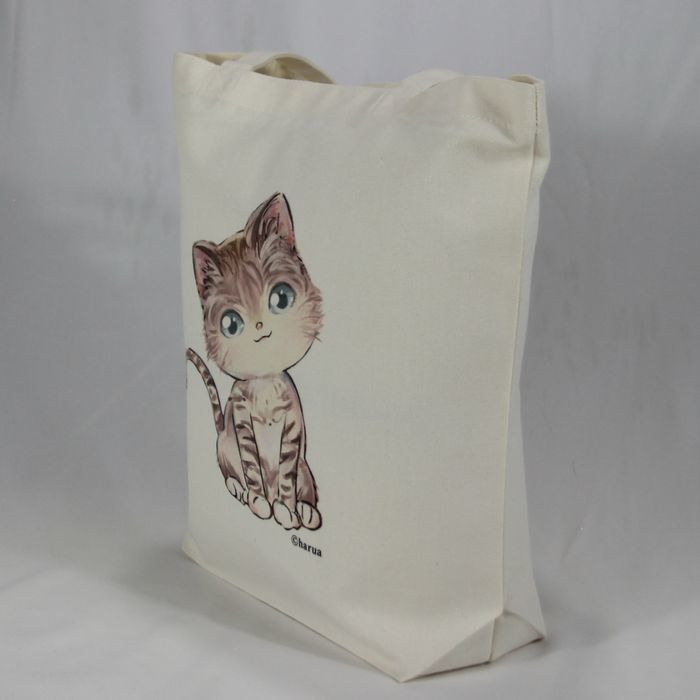 ★オリジナル猫トートバッグ haruaデザイン キャンバス ナチュラル レディース ガールズ 厚めで丈夫 普段使い かわいいおすわり猫 もこもこネコ hra005