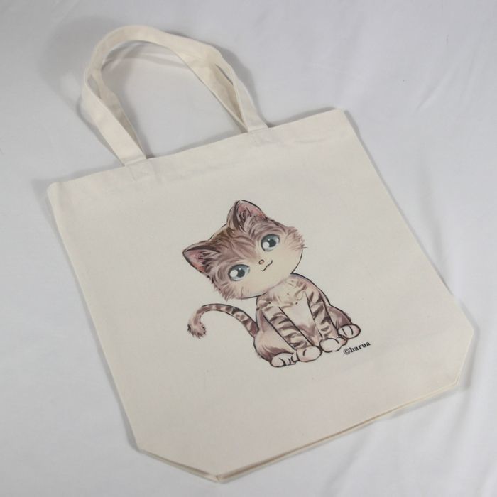 ★オリジナル猫トートバッグ haruaデザイン キャンバス ナチュラル レディース ガールズ 厚め丈夫 普段使い かわいい猫もこもこネコ hra005