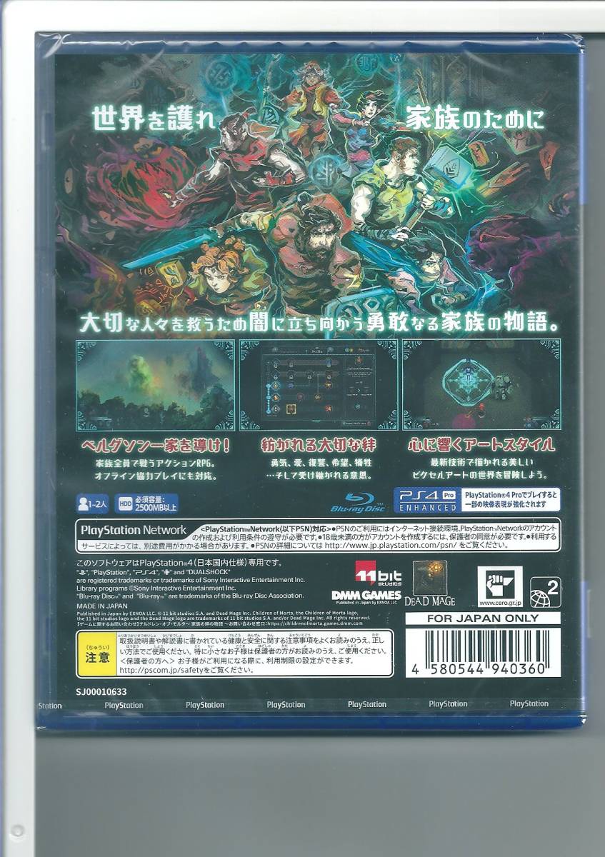 ●JANコード4580544940360 n1 ☆PS4 チルドレン・オブ・モルタ 家族の絆の物語 ●商品の状態 新品未開封、包装されたままの状態です。 |