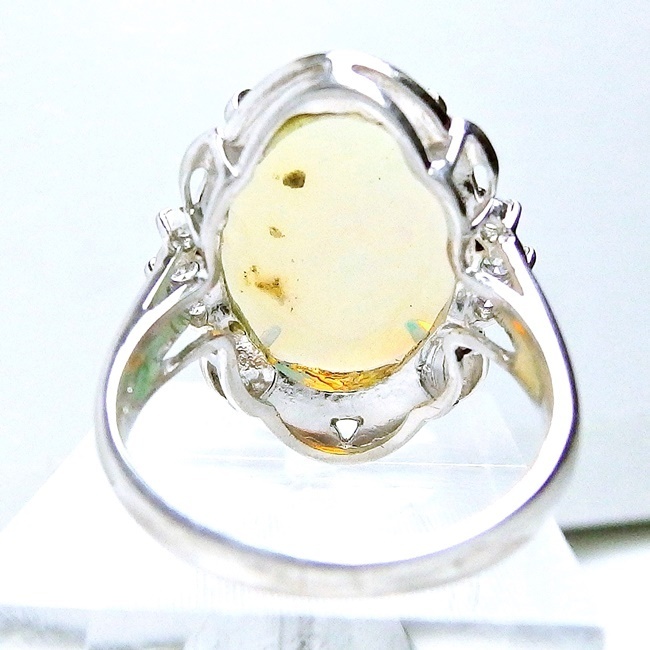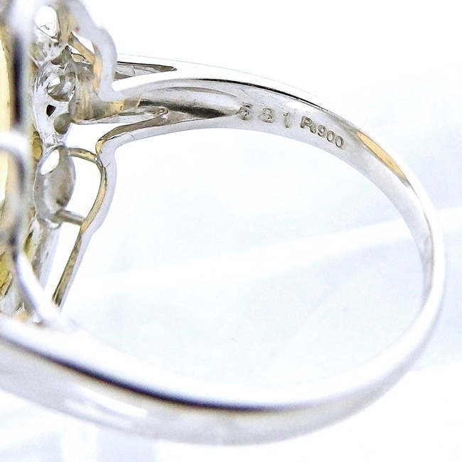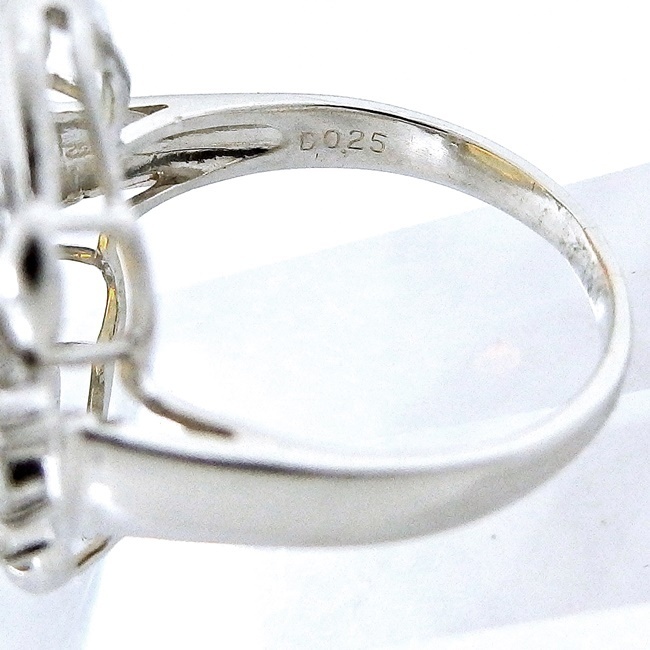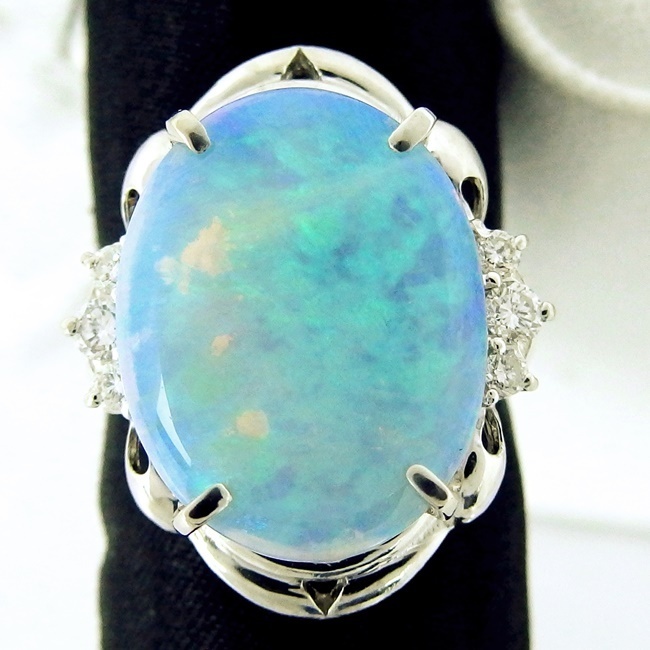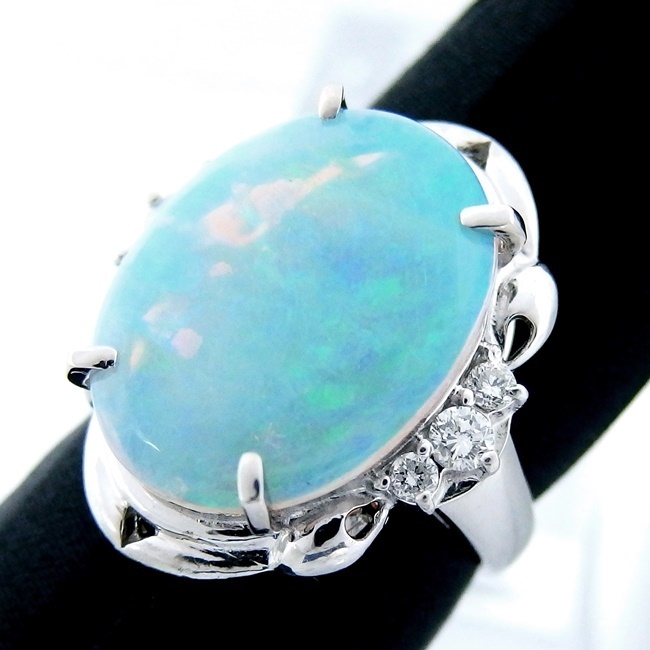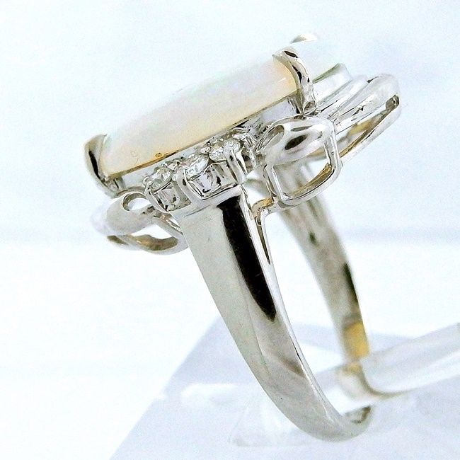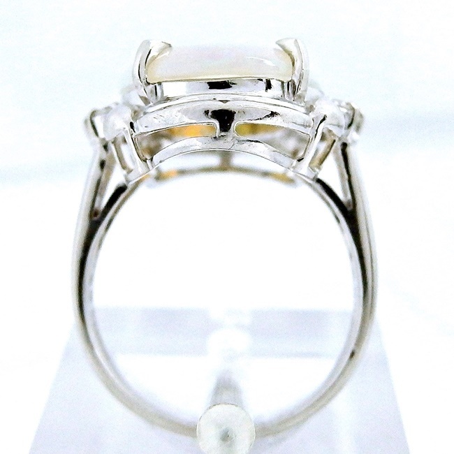*Pt900 *オパール:5.81ct *ダイヤモンド:0.25ct *モチーフの大きさ(約):縦23.8mmx幅20.0mmx厚7.2mm *アームの幅:約2.0mm~4.1mm *重さ:10.4g *サイズ:16.5号 *ランク:A ※写真に撮り切れていないキズや汚れがある場合もございます。 (RO ∞)10023439