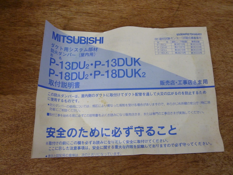 三菱 丸形防火ダンパー P-18DU2 未使用 ダクト用