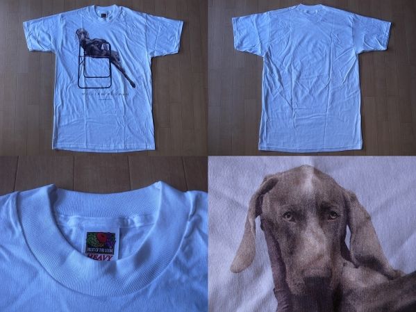 90's William Wegman Weimaraner LOLITA フォト Tシャツ M 白 ウィリアム ウェッグマン FOTOFOLIO ワイマナラー犬 ART 芸術 美術館 写真/