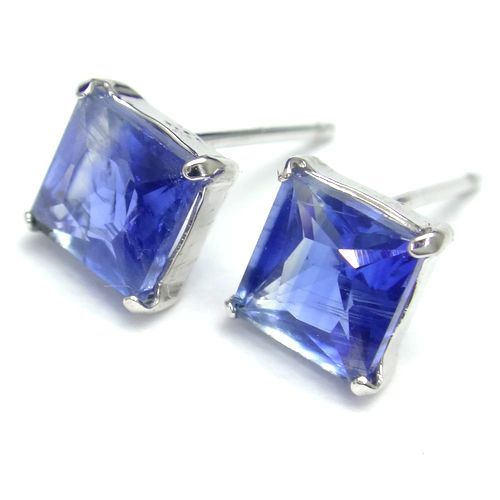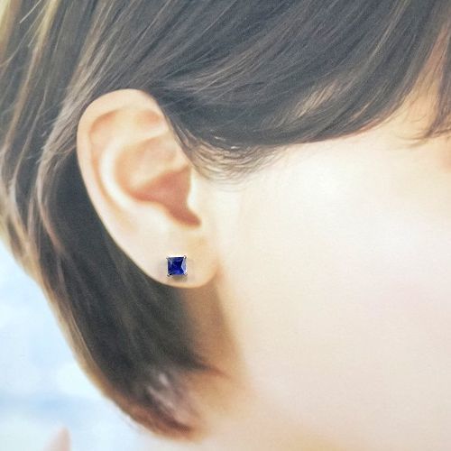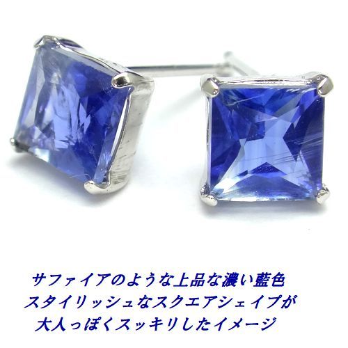 K10 カイヤナイト 5mm スクエア プリンセスカット ピアス WG YG ジュエリー スタッド 選べるゴールド 希少石 天然石 高品質 箱付き