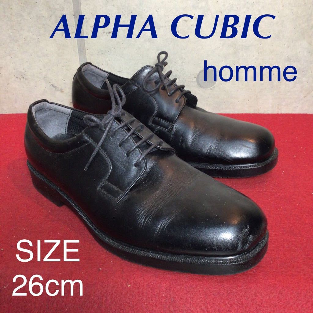 【売り切り!送料無料!】A-62 ALPHA CUBIC HOMME ビジネスシューズ ブラック 26cm!中古箱無し!