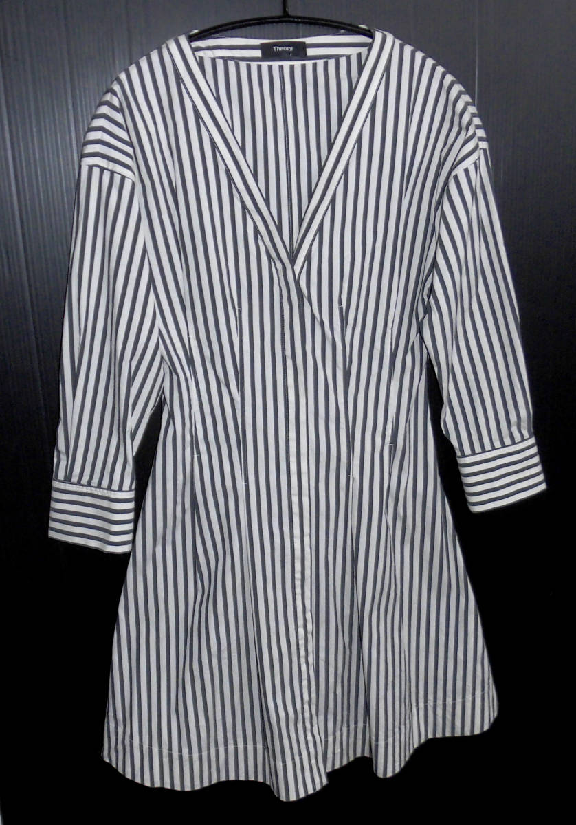 ◆美品 定価3.8万 THEORY セオリー 18SS ストライプ ワンピース 0 8105529 BRYSON.STRIPE/DARTED.BUTTONDOWN.