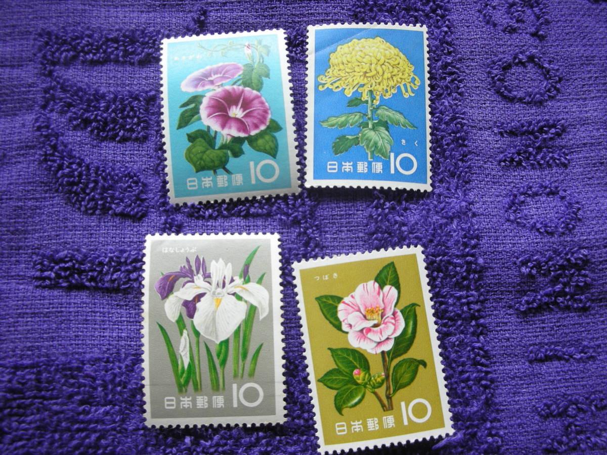百円処分;花シリーズ  額面10円 あさがお 他 4種  4枚  写真参照