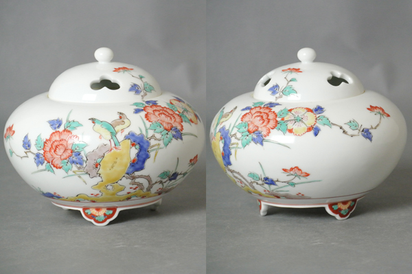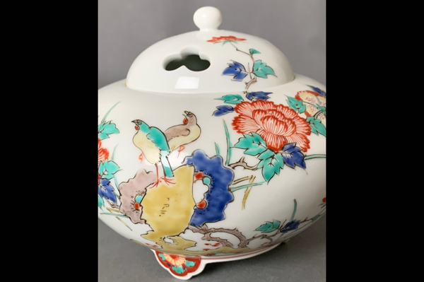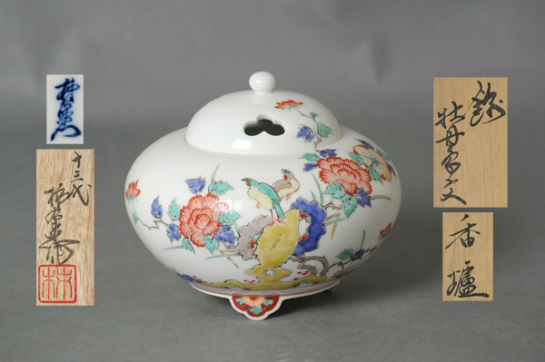 | 【 十三代 酒井田柿右衛門窯 錦 牡丹鳥文 香爐 共箱付き】 |