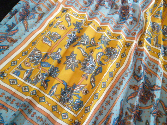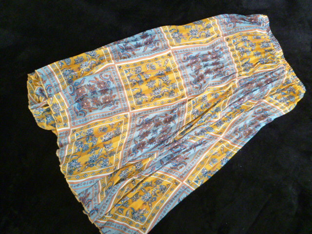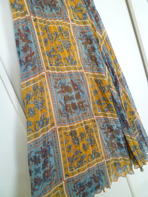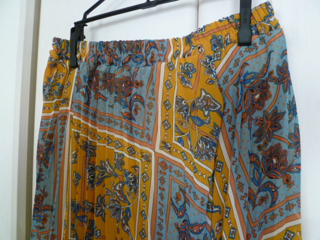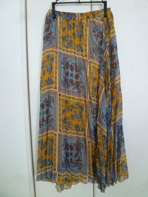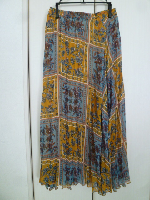 COLZA△マスタード色からし色ペイズリー柄エスニック風シフォンフレアーロングプリーツスカートM/マキシ丈△SK714