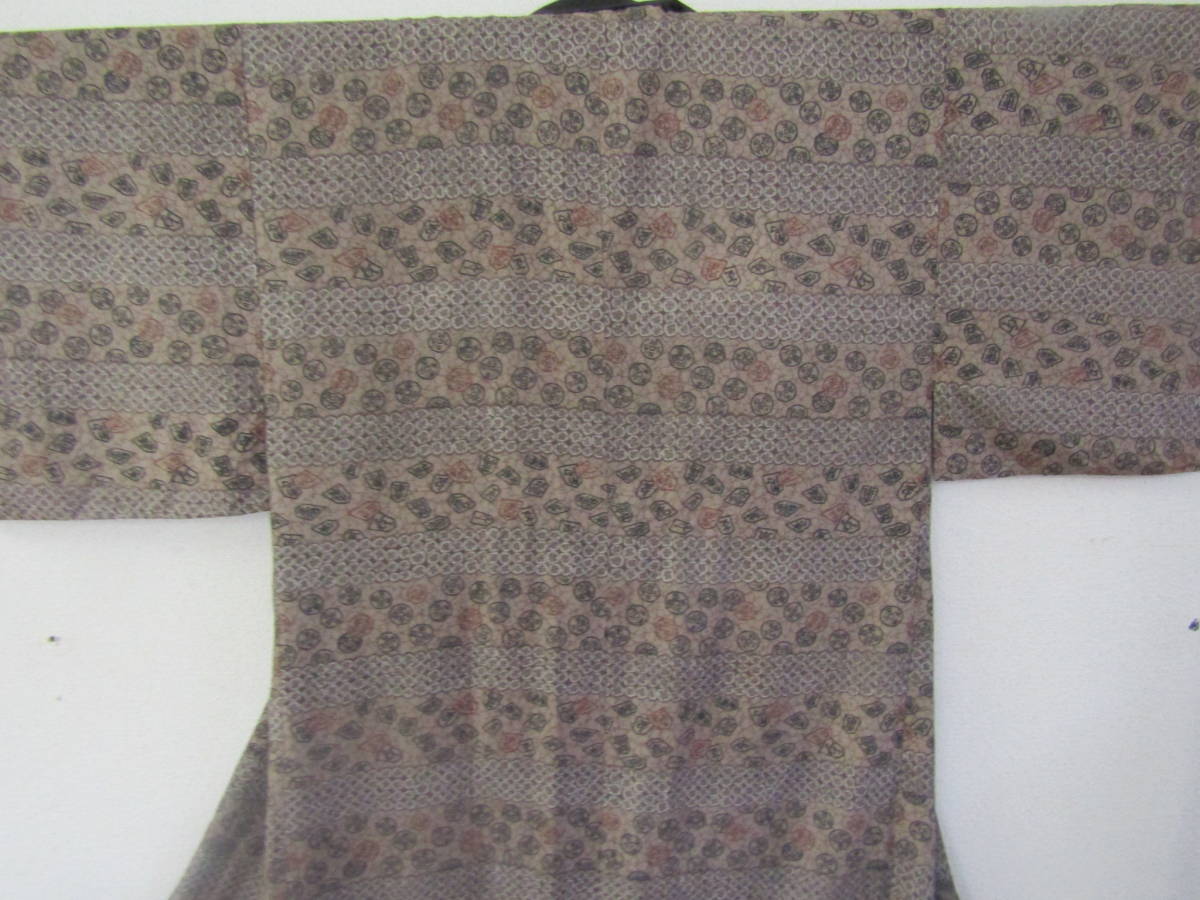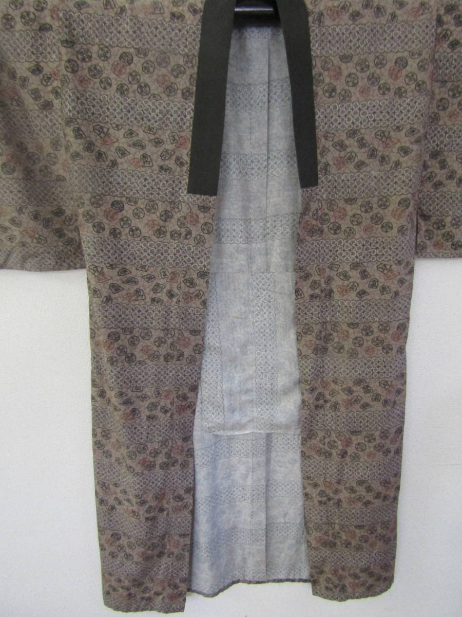 平絹、着用可、丈 127cm 裄 67cm 前幅 23cm 後幅 32cm 袖丈 47cm 袖幅 35cm