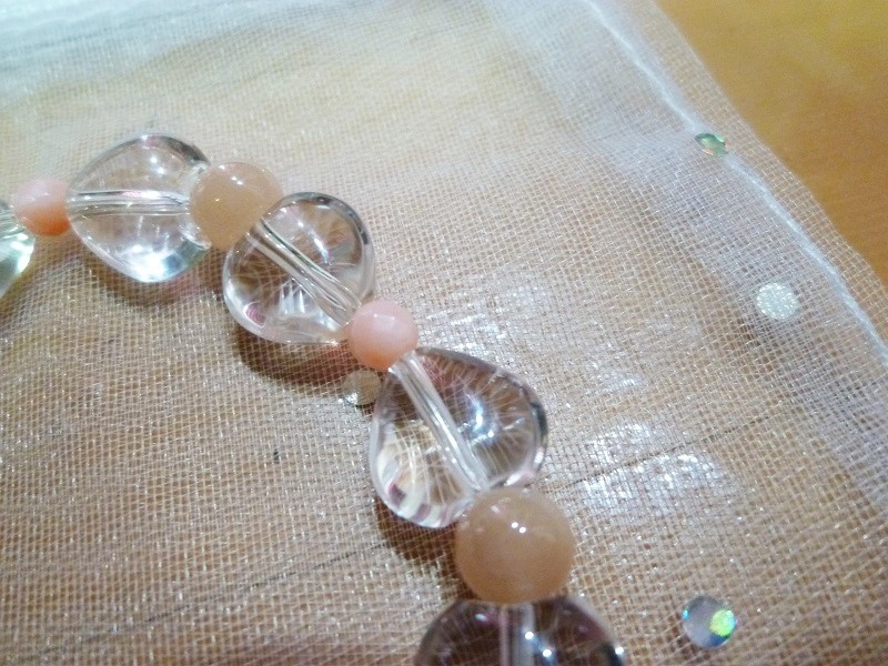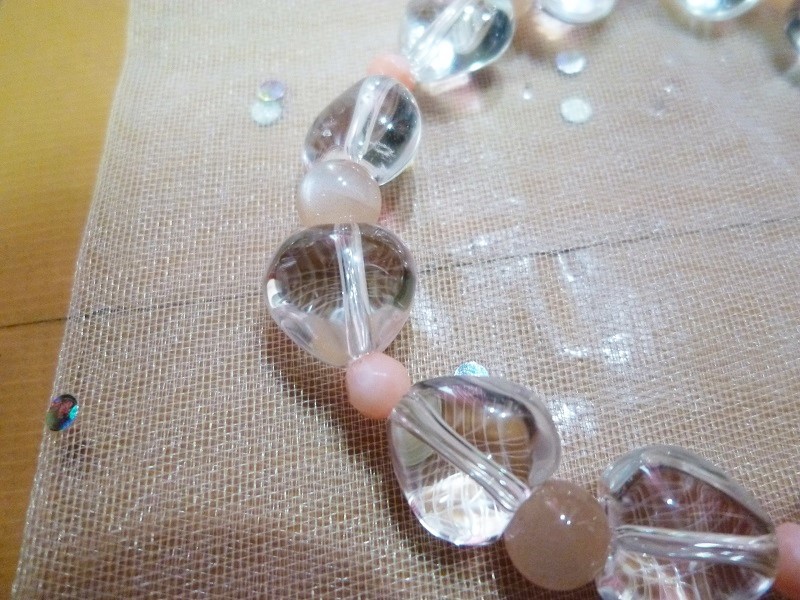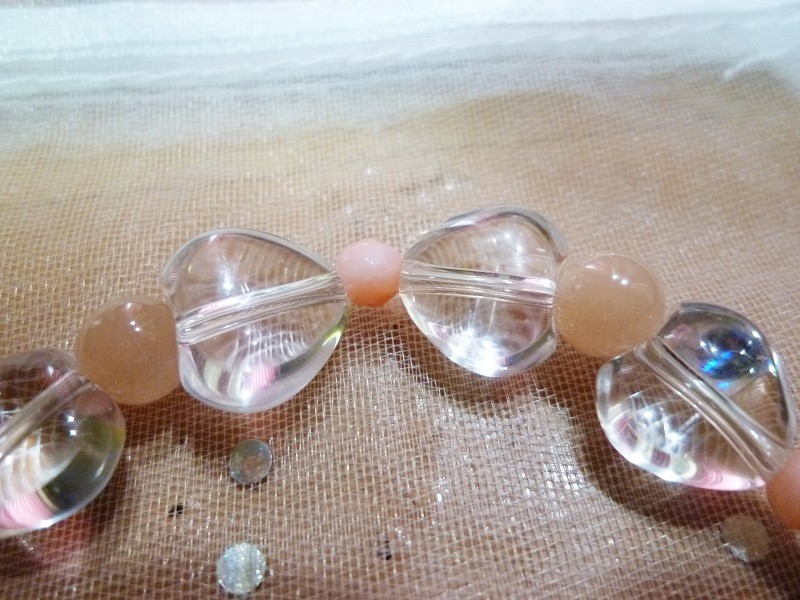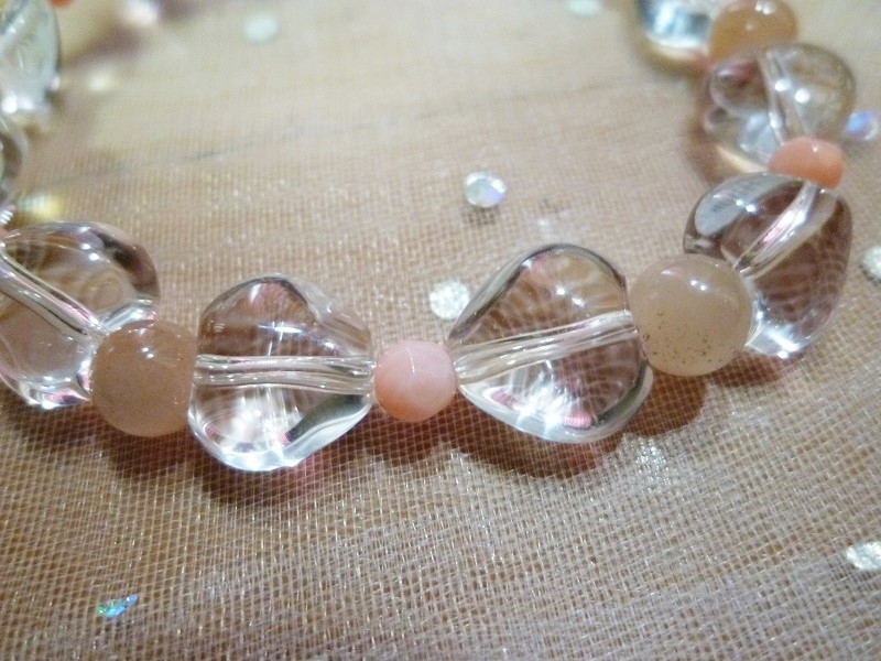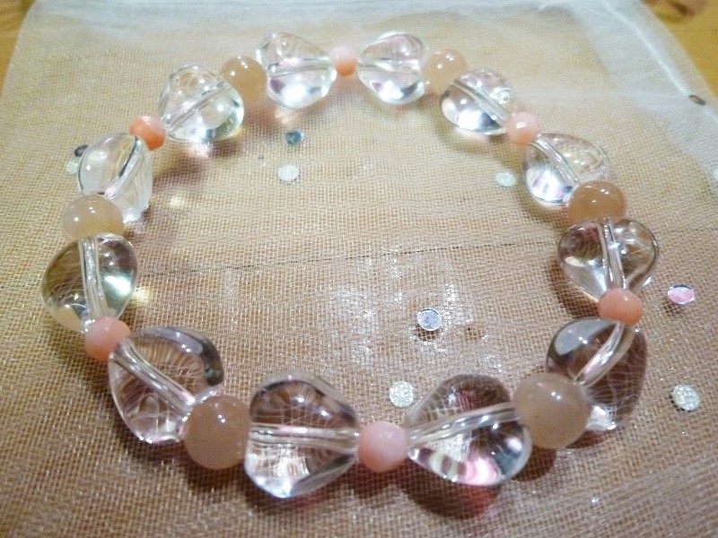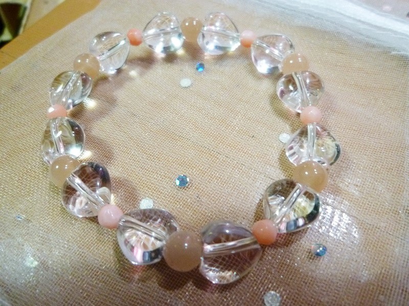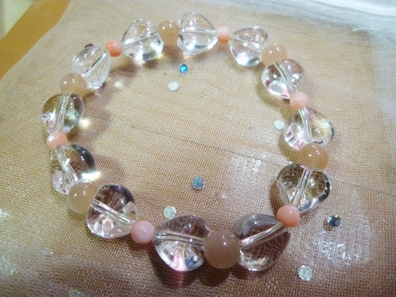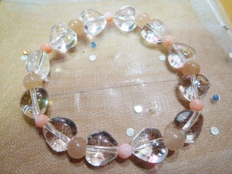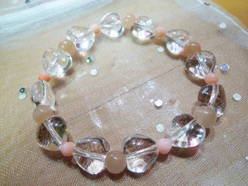 ☆水晶ハート、オレンジムーンストーン、ピンクサンゴ(染)の 高品質のブレスレット商品です。