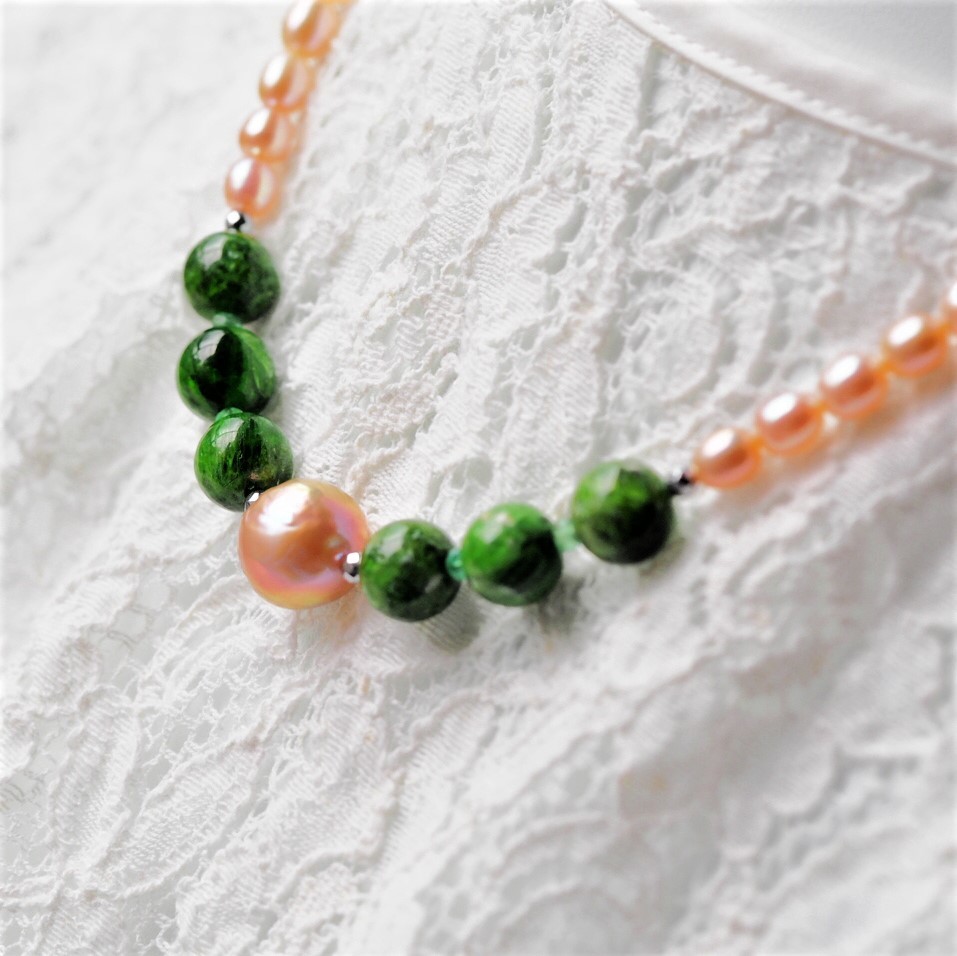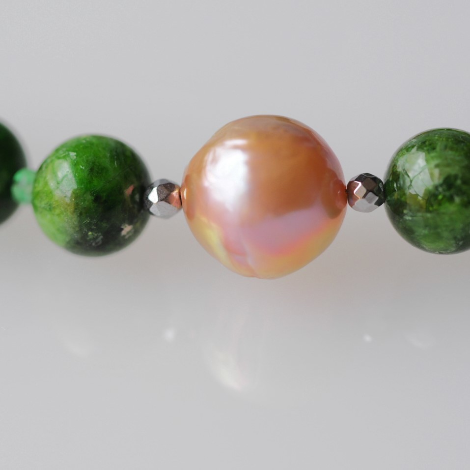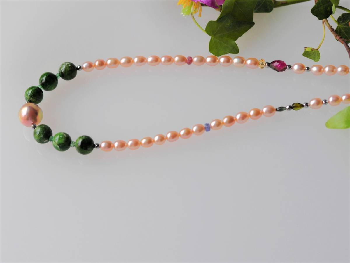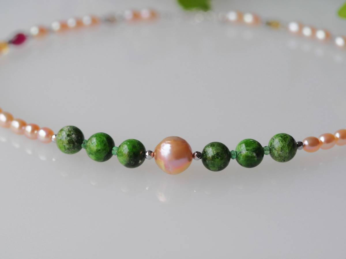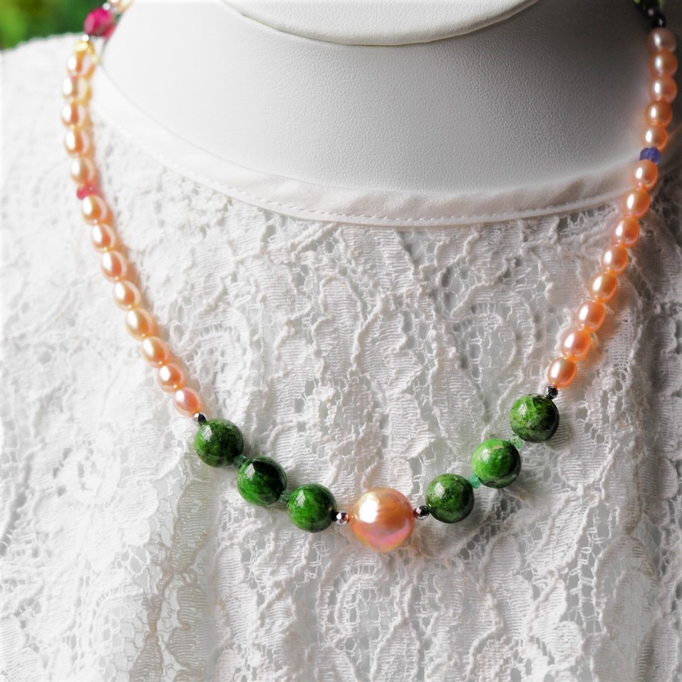 カラフルで綺麗な天然石を組合わせて、マルチカラーのネックレスを仕上げております。