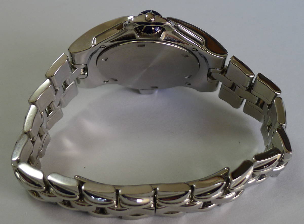 ケースサイズは直径38mm、腕周りは1717.5cm、スポーティかつドレッシーなデザインです。