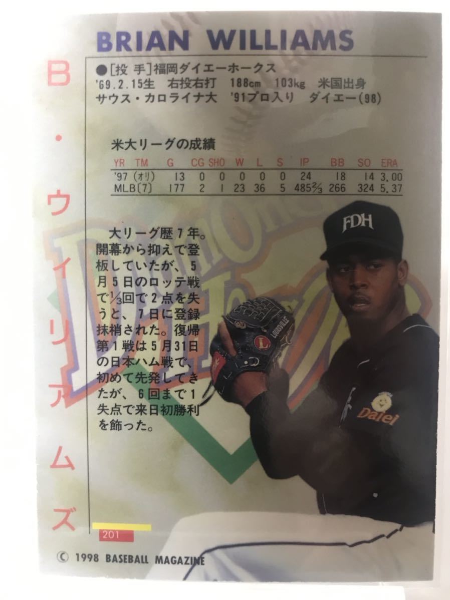 ウィリアムズ  福岡ダイエーホークス  レギュラーカード BBM 1998 ダイヤモンドヒーローズ  201